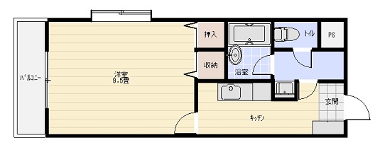 | 間取り | 1K | 間取り詳細 | 洋9.5、キッチン |